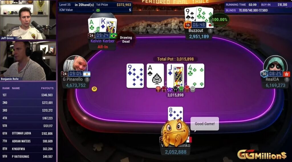 An effective performance from ‘RealOA’ made the difference in this week’s GGMillion$ final table. After the event, Ben Rolle complimented Kelvin Kerber on his actions too, but in the end, the chips told the true tale.